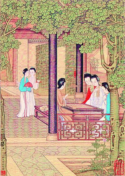 清代绘画中的弈棋女性形象,既是文人士大夫对理想女性的想象,也寄托了他们的文化理想和文化诉求。随着西学东渐,西洋绘画技法受到宫廷文人画师的崇尚。清康乾时期焦秉贞绘《桐荫对弈图》,画师笔下的庭院在焦点透视法的描绘中进一步彰显环境的幽深,而对弈场景的设置,进一步烘托出一种闲静之美。同时,通过对此类画作的细节考察,可以发现,作为传统的绘画类型,源自屈原《离骚》“香草美人”的文人以女性自比的传统,在明清仕女画中如何演变。明清时期仕女画中的女性,已非真实女性,而成为一种男性模式化的偶像。正如有学者指出,清代的仕女画负担着男性或“载道”或“言情”的诉求,画中的女性往往在观画者看来是一种自我投射,文人士大夫借此抒发自己“骥遇伯乐”“玉在匮中求善价”的殷切期望。